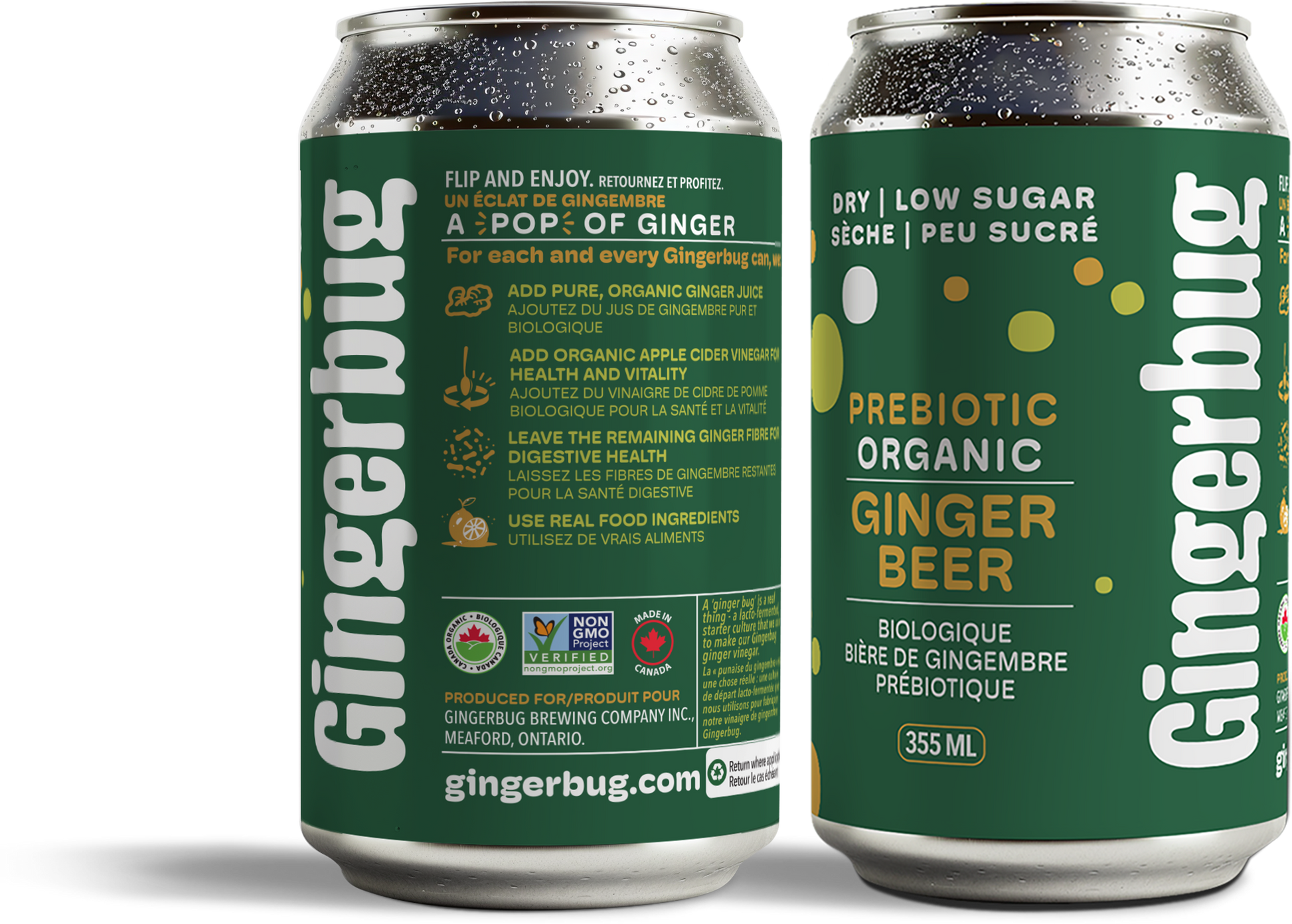 Enjoy the gut-friendly goodness of Gingerbug in three vibrant flavors: Original, Low Sugar, and Spicy. Each can is crafted with organic ginger juice and natural ingredients to support digestion. The Original delights with zesty ginger and lemon, Low Sugar offers a crisp, clean taste with just 4g sugar, and Spicy delivers an extra kick of heat. All are gluten-free, Non-GMO, prebiotic, and proudly Canadian.